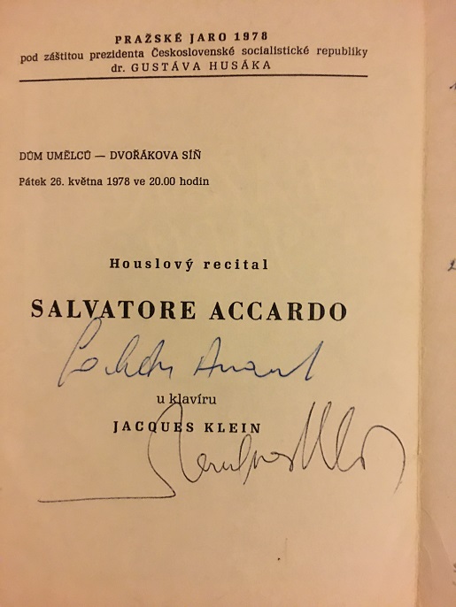 Salvatore Accardo (1941-), like Ricci and Kremer, is known as one of several Paganini specialists, and has unfortunately been unable to shake off that label. He came to prominence in his teens after winning a Paganini competition in Genoa. In the mid-1970s he recorded all six Paganini Concertos on the Deutsche Grammophon label, including #5 and #6 which were reconstructed from long-lost manuscripts. This program is from a recital where he played no Paganini! He recorded extensively for the Philips label, and some of his best recordings for Philips were the Bruch works for violin including the long-forgotten "In Memoriam", "Konzertstuck", "Adagio Appassionato", and the 3rd Violin Concerto.
