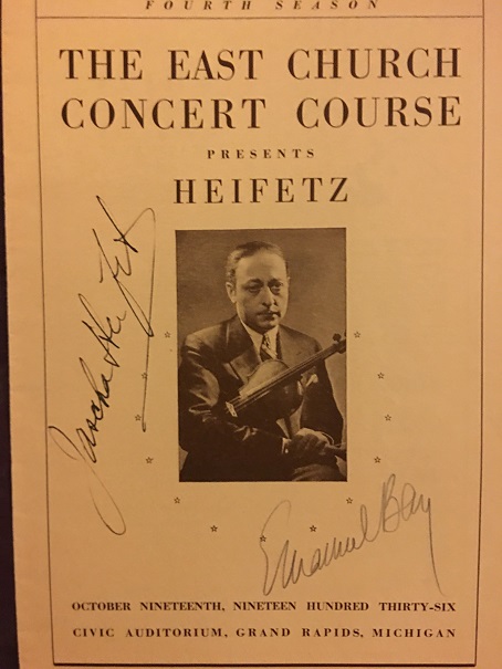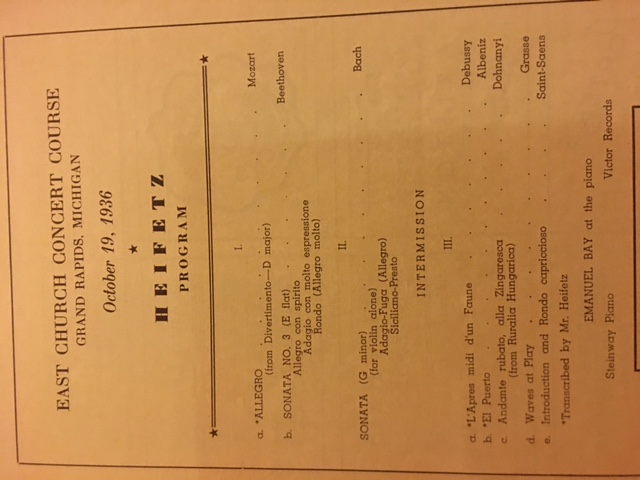 Jascha Heifetz (1901-1987) emigrated to the US in 1917, from St. Petersburg, Russia, where he graduated from the Imperial Conservatory before he was even 10 years old. He became a US citizen in 1925. The rest, as they say, is...not history so much as a revolution. The violin world looked completely different, and was forever changed when Heifetz's career began. Violinists much older and already seasoned veterans of the concert stage all but lost their careers to him. From the time of his Carnegie Hall debut in October 1917, until the late 1950s, he concertized all over the world and in the US, was for many years among, if not the, highest-paid classical music performer. This program is from a recital given in 1936 with his long-time pianist, Emanuel Bay (1895-1964), who was also Russian.