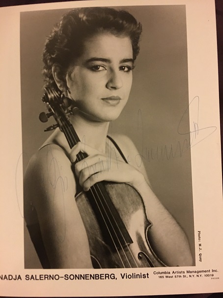 Nadja Salerno-Sonnenberg (1961-) was born in Rome, but moved with her family to the American east coast at a young age. Her first studies were at the Curtis Institute of Music, and later at Juilliard with Dorothy Delay. She credits Delay for her career; she was very rebellious, and at one point stopped bringing her violin to the lessons. Finally, Delay said words to the effect of, "Bring your violin next week, or this is over. If you want to waste your talent, I won't be a part of it." She went on to win a major competition, the Naumburg, which led to numerous concert engagements and a recording contract. Circa 2008, she ceased her frenzied solo career to take what she called "a new ride" as music director of the New Century Chamber Orchestra, which she held for many years. She then accepted her first professor post - Extraordinary Professor in 2015 at Loyola University in New Orleans, Louisiana. Her recordings of the Shostakovich and Barber Concertos remain two of the definitive ones of those works.