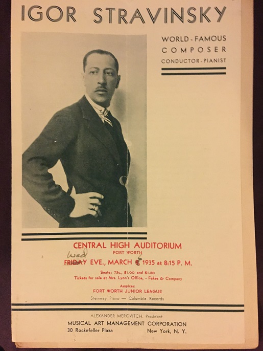 Igor Stravinsky (1882-1971) and Samuel Dushkin (1891-1976) toured the United States in 1935 as a violin-piano duo, performing the transcriptions that Stravinsky did of his orchestral works. It was at this point in the composer's life that he decided that he would eventually move to the United States. And he did, in 1939. Then the war broke out. When Pearl Harbor was bombed, he became worried and asked Dushkin, "Where should I go now?!" He had previously lived in Europe, mostly Paris, after leaving Russia in 1910. By the time he and his wife, Vera, came to the US, Stravinsky had lost his first wife, eldest daughter, and mother all in Paris, within a year of each other.