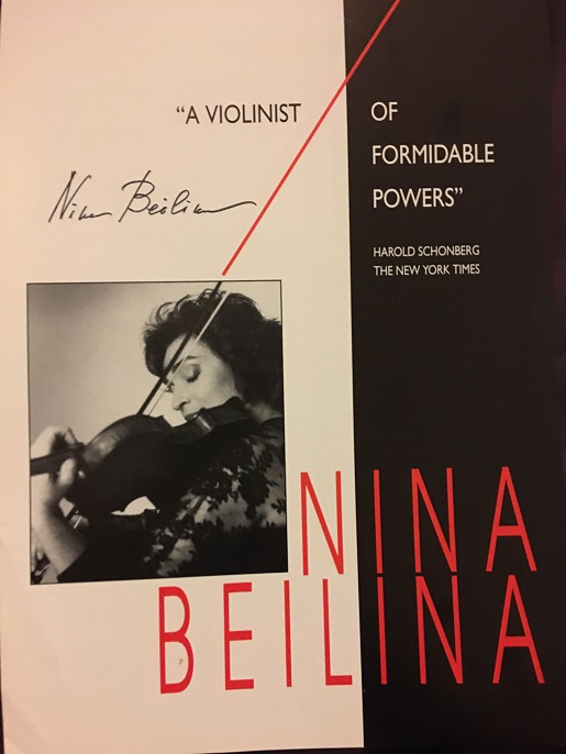 Nina Beilina (1937-2018) emigrated to the US in the 1970s from the former USSR and lived in New York. She founded the string ensemble Bacchanalia, of which she was the leader. A pupil of David Oistrakh, she - like many of his pupils - was a devoted teacher. One of my friends from the Pacific Northwest traveled once a month for a few years to New York for lessons. She also taught at the Mannes School of Music for many years. Her son, Emil "Micky" Chudnovsky, is a fine violinist who placed highly in several international competitions. Oistrakh heard him play when he was very young. Oistrakh told her, "I'm sorry, but you have a vioilnist on your hands!" Interestingly, Beilina was sometimes mistaken for Erica Morini (1904-1995), one of the greatest violinists of the 20th century but largely because of her gender, largely forgotten today. Indeed, the two ladies had a definite physical similarity. A fascinating documentary of Beilina's life was done some years before she passed away.