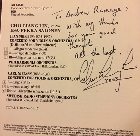 Cho-Liang "Jimmy" Lin is one of the great performers and recording artists of our time. He was born in Taiwan and came to the US to study at the Juilliard School, where he now teaches. His performances and recordings are consistently outstanding, and all feature a characteristic dash and vigor. My favorite recording of his, to date, is the Sibelius Concerto, recorded in 1987 when he was but 27...usually a little young to have a complete understanding of this work but he understood it I think.