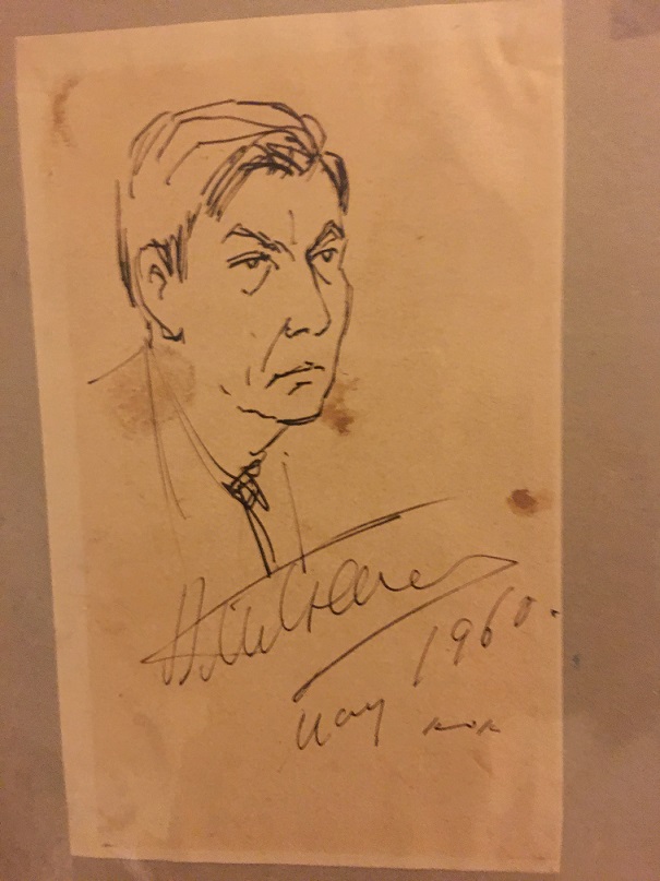 A sidewalk sketch of Milstein - or maybe sketched during a concert. Artist unknown. However, Milstein gave it his signature of approval. Dated 1960, he would've been about 56 years old when this was done.